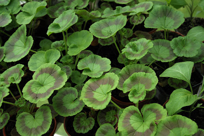 Here are the geraniums in the greenhouse, they are just about ready to plant out into their terracotta pots.